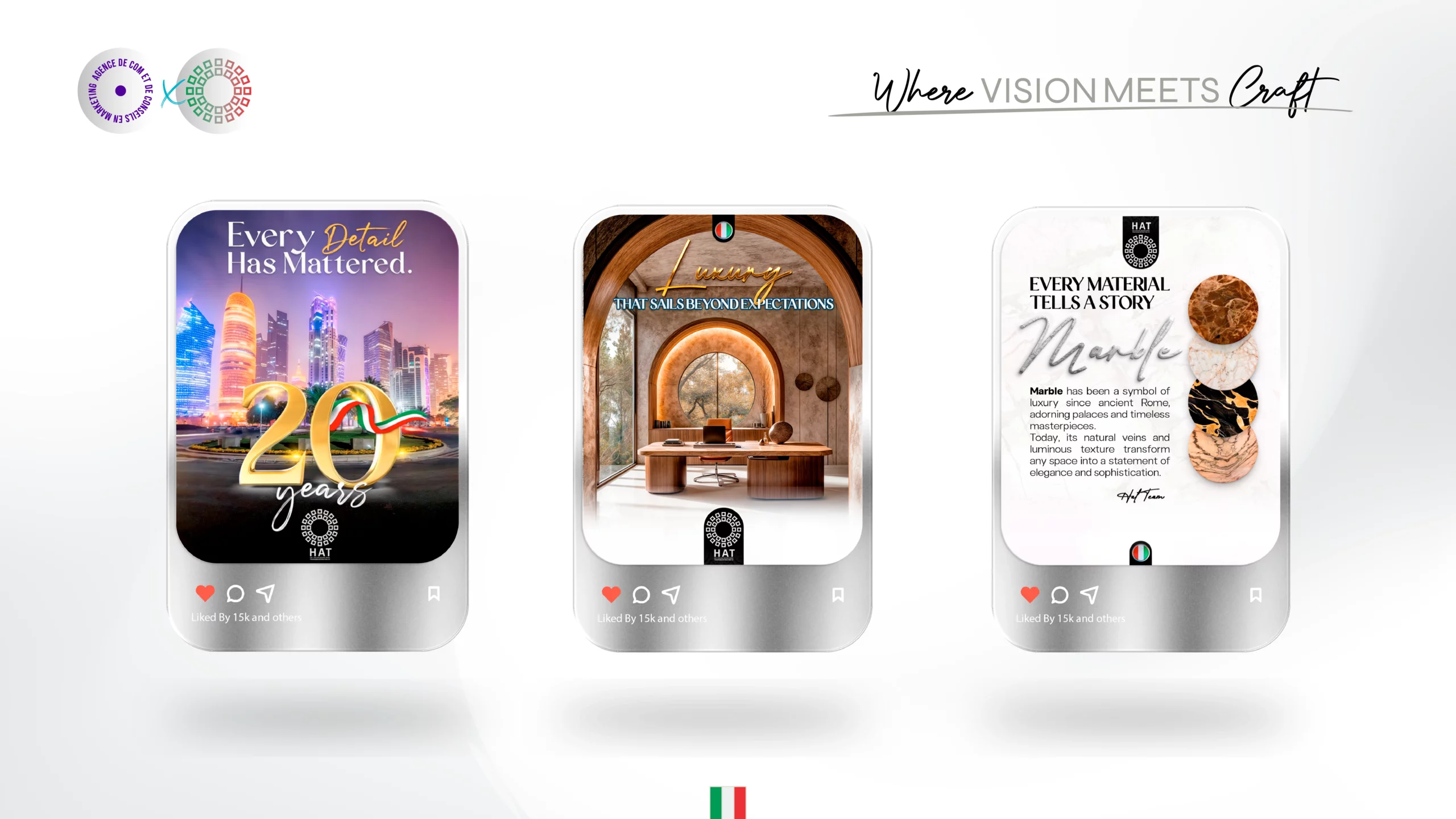 Stratégie : Définition de la ligne éditoriale et visuelle : Conception d’une charte graphique fidèle à l’univers luxueux des réalisations HAT Italian. Design, ancrée dans l’excellence italienne et alignée sur l’ADN de la marque. Planification et création de contenu : Mise en place d’un calendrier éditorial mensuel. Publications visuelles et informatives : photo/vidéo des projets livrés par HAT, avec mise en avant des détails d’exécution, des finitions et des matériaux utilisés (marbre, bois, métal), du concept à la livraison. Gestion et animation des réseaux sociaux : Publication régulière sur Instagram, Facebook, LinkedIn et TikTok pour maximiser la portée au Qatar et toucher prescripteurs & décideurs.